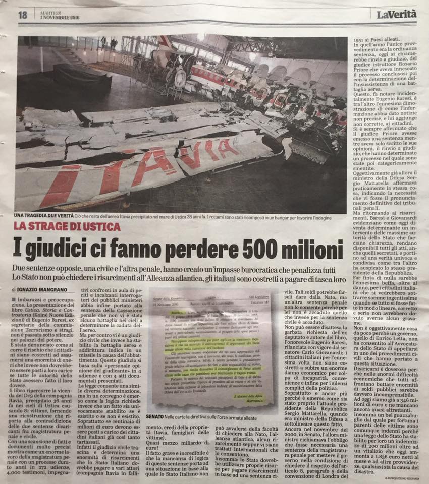 Il fatto grave e incredibile è che la mancanza di logica di queste sentenze porta ad una situazione in base alla quale lo Stato Italiano non può avvalersi della facoltà di chiedere alla Nato, l’Alleanza Atlantica, alcun risarcimento seppur vi siano trattati internazionali che lo consentono.