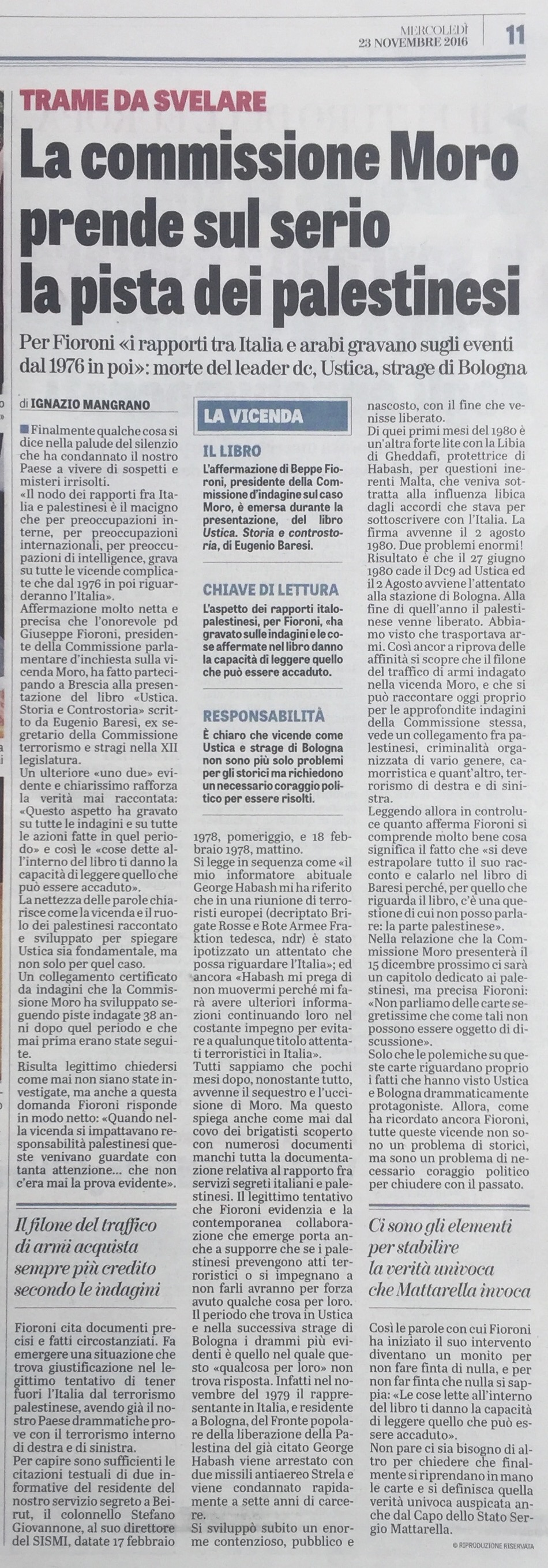 23.11.2016. LaVerità: “La commissione Moro prende sul serio la pista dei palestinesi”.