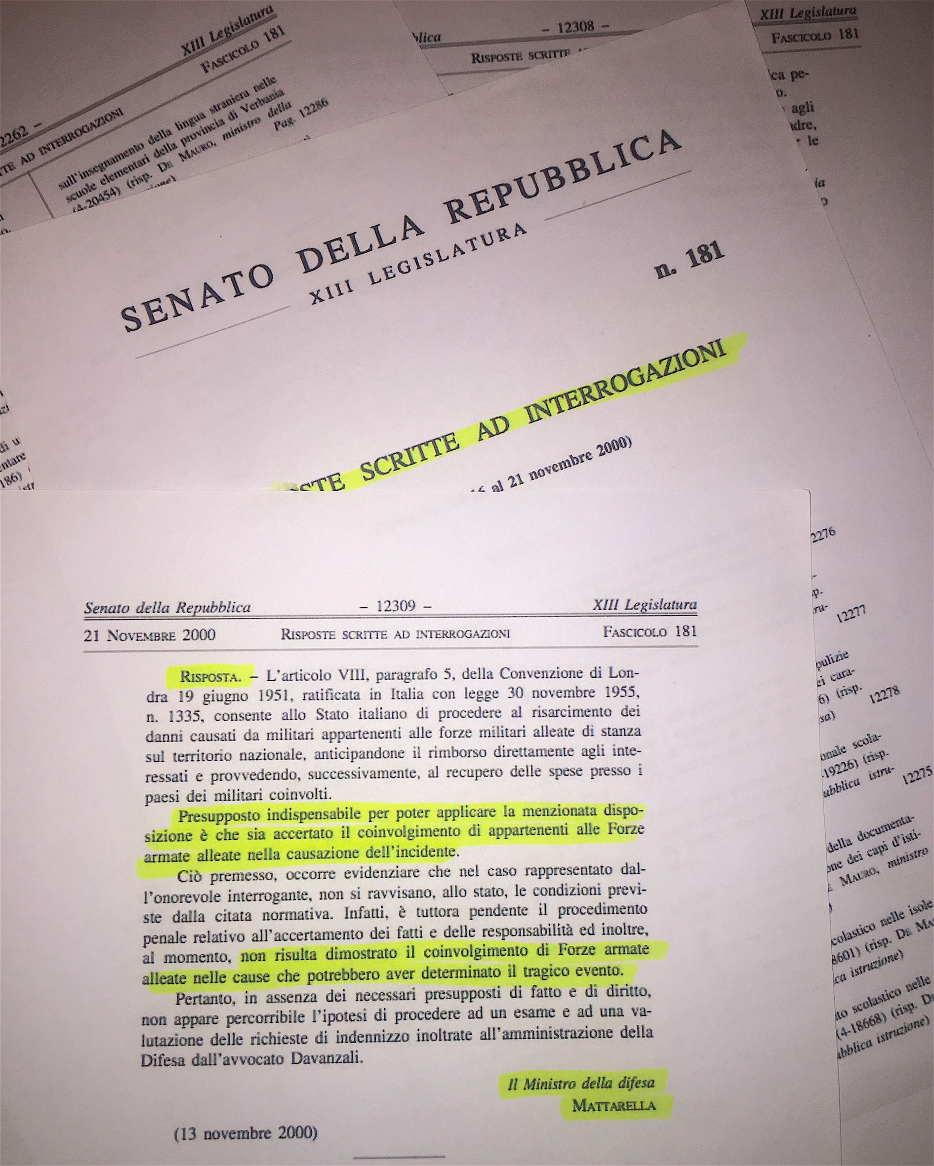 Ripeto per l’ennesima volta che se fosse vero quello che i tribunali civili hanno stabilito, per la latitanza dello Stato nel difendere la verità dei fatti, quei 500milioni di euro lo Stato italiano dovrebbe comunque chiederli alla Nato e non a noi cittadini: