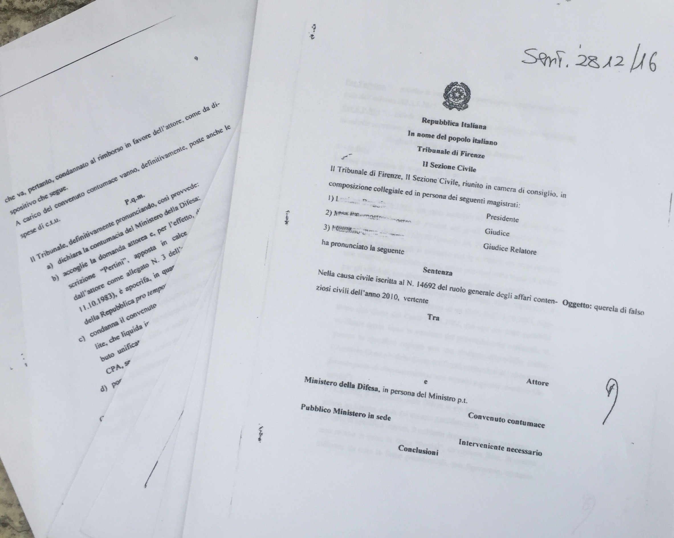 Come potete vedere lo Stato Italiano è considerato “Contumace”.