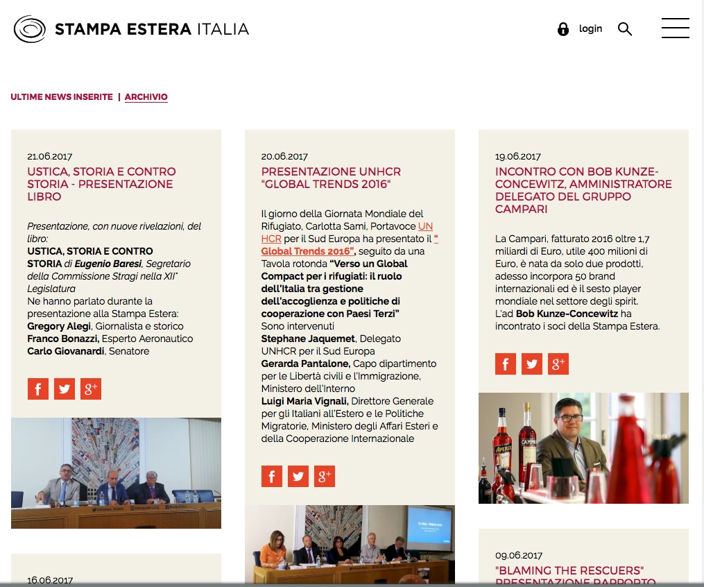 20.06.2017 – Stampa Estera Italia: Ustica, Storia e Controstoria. Presentazione Libro. di su in Articoli http://www.stampaestera.org/news/archivio/page2 Continua a leggere Articolo precedente 15.6.2017 – Agenzia Stampa Italia: ” Roma, disastro aereo di Ustica: il 21/6 presentazione libro-denuncia con Baresi e Giovanardi.Articolo successivo 21.06.2017 – L’Occidentale: “Ustica, Giovanardi: clamorose rivelazioni alla vigilia dell’anniversario”