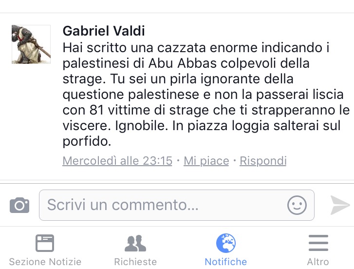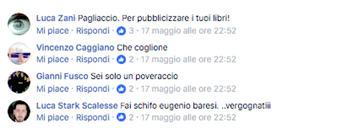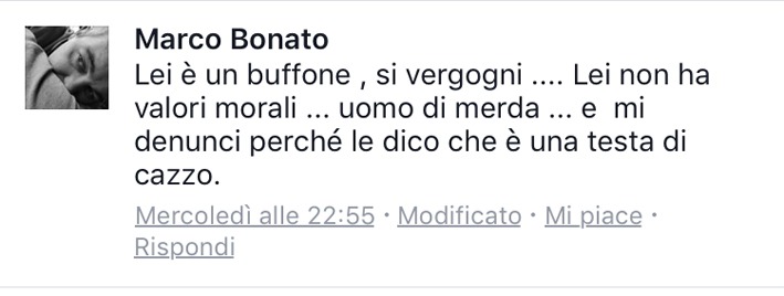 Ecco, così, una parte della serie di minacce ed insulti che mi sono pervenuti.