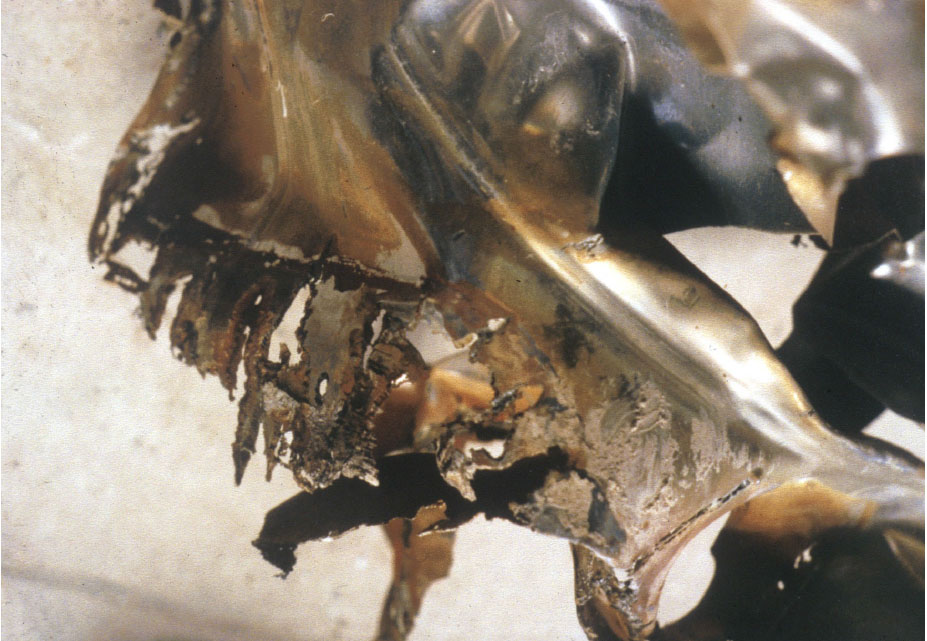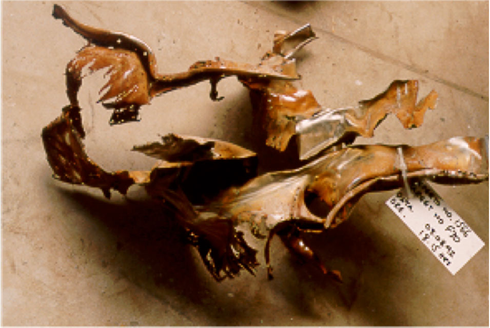 Queste sono le foto del lavabo della toilette: accartocciato in conseguenza dell’esplosione sotto di esso della bomba.