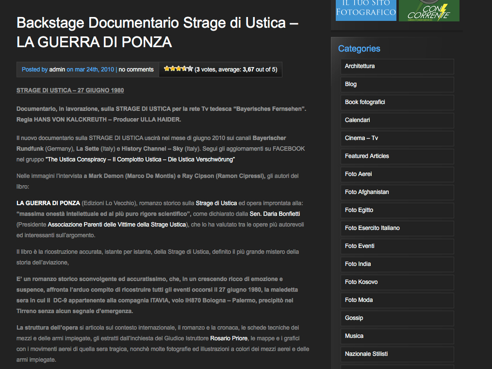 _____________________________________________________________________________________________________________________________________________________Documentario, in lavorazione, sulla STRAGE DI USTICA per la rete Tv tedesca “Bayerisches Fernsehen”.