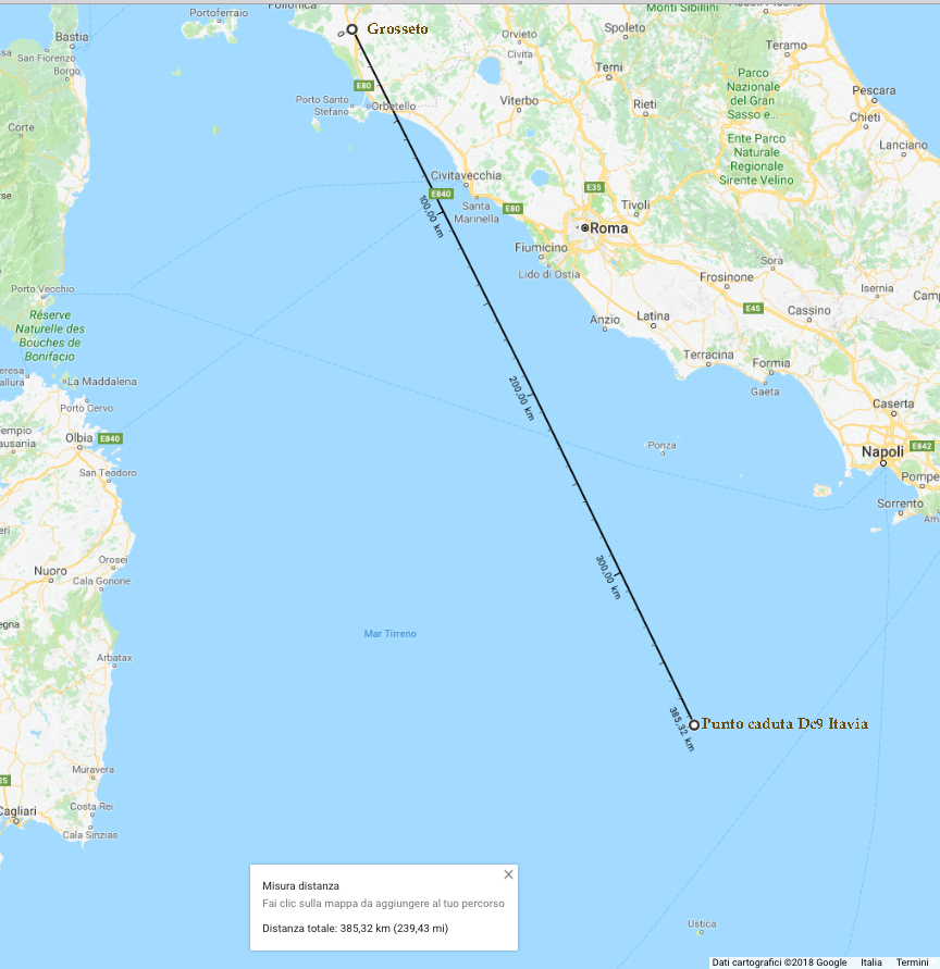 La zona Delta, ad ovest dell’aerovia Ambra 14, è appunto una zona riservata agli aerei militari di Grosseto per le loro esercitazioni e manovre, non sottoposta a particolare controllo a meno che gli aerei non vadano pericolosamente in prossimità dell’aerovia stessa.