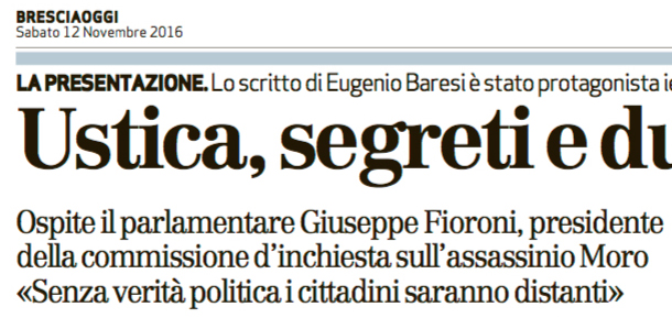Lo scritto di Eugenio Baresi è stato protagonista ieri, nell’Auditorio di Santa Giulia, alla presenza di autorità civili e militari, Ospite il parlamentare Giuseppe Fioroni, presidente della commissione d’inchiesta sull’assassinio… [Continua a leggere]